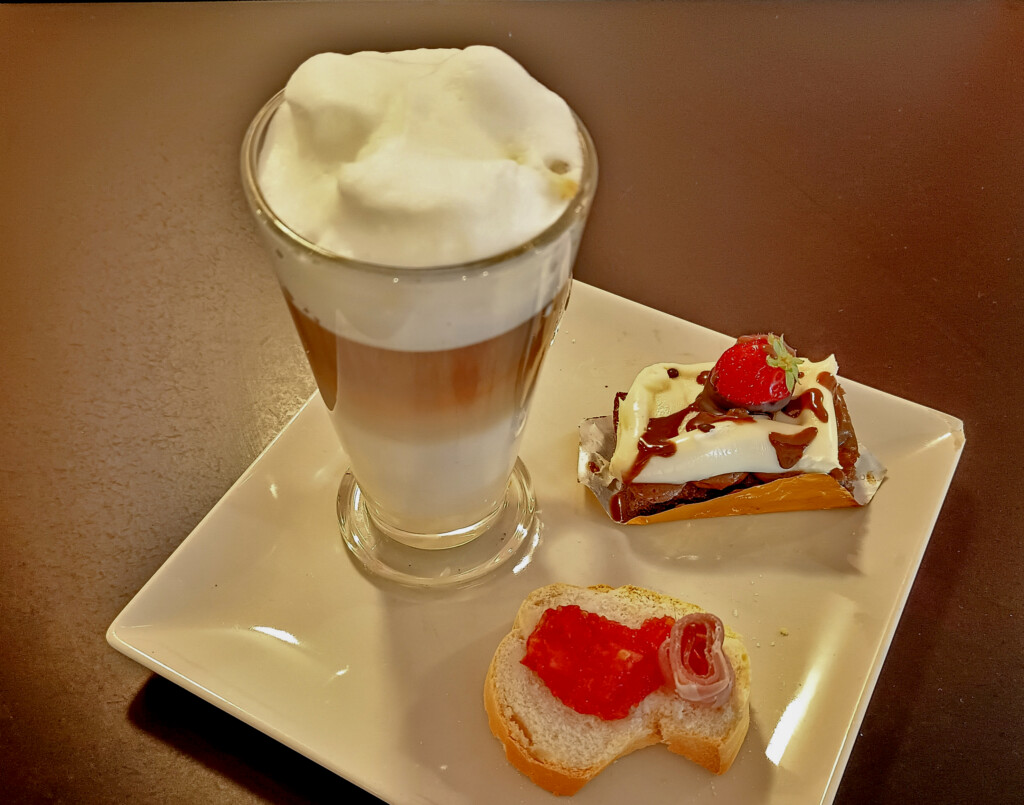 - “Chocolate Factory” (inspired by Chocolate Factory) at Cafetería Bego Pastelería: latte with mini ham and tomato toast and chocolate delights. Available from 9:00 to 11:30 a.m.
